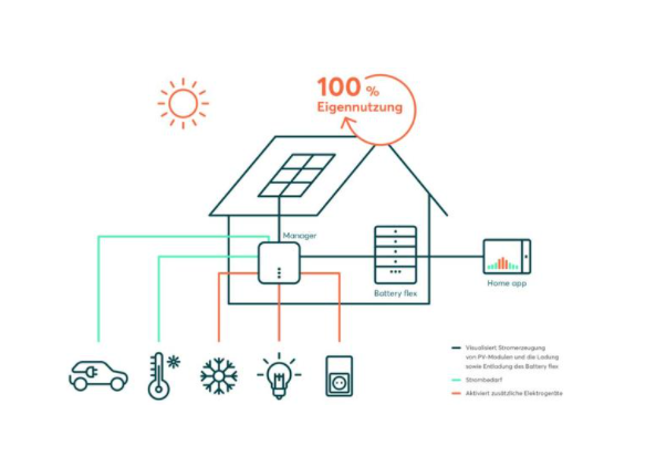 Verbessern Sie Ihren Eigenverbrauch und werden unabhängiger von Ihrem Energieversorger. Die tagsüber nicht benutzte Solarenergie wird in der Batterie gespeichert und steht nachts zum Verbrauch zur Verfügung.